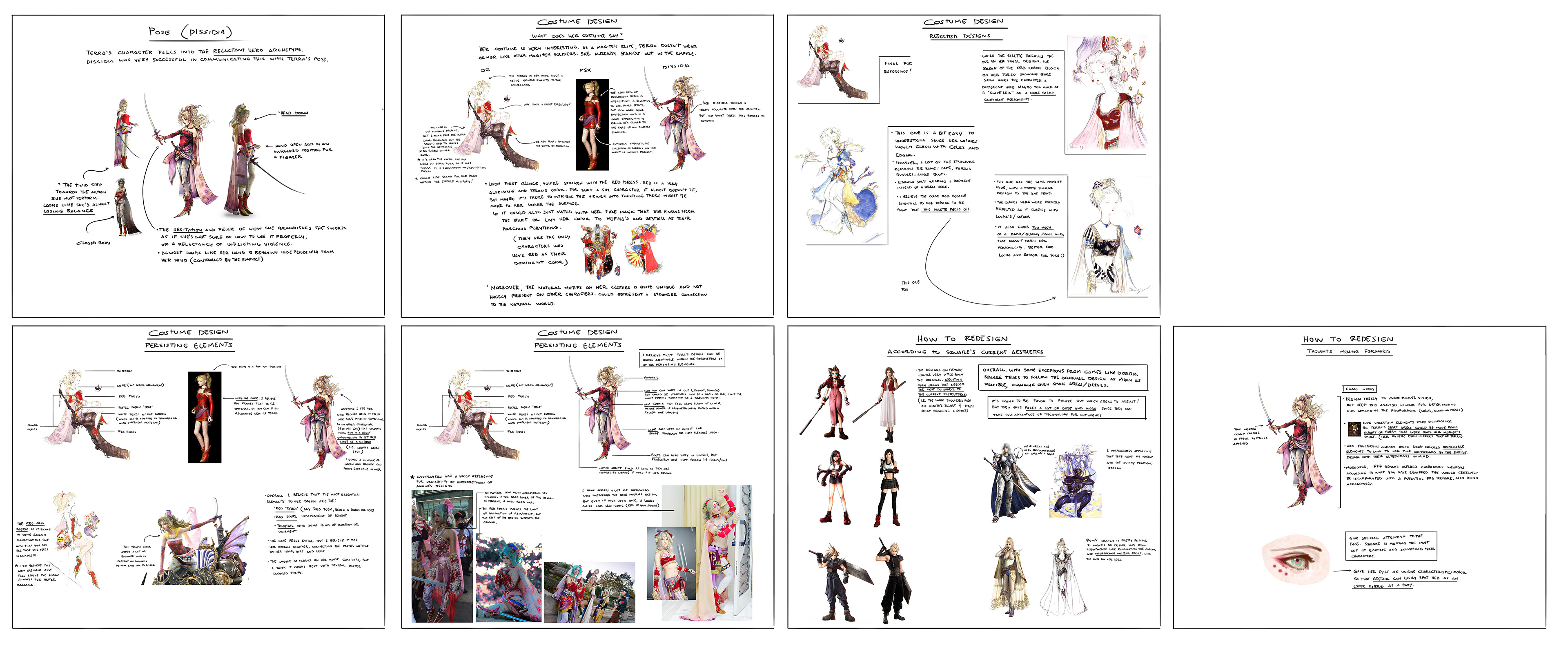 Initial concepts that kickstarted this project. The main goal was to honor Yoshitaka Amano's original design while bringing the character into the new generation of games that square has been putting out. specially referencing the ff7 remake.